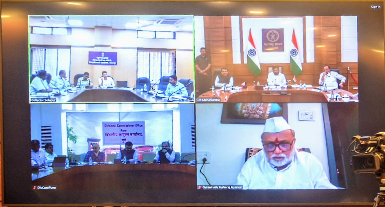 पंढरपूर विकास आराखड्यासंदर्भात मुख्यमंत्र्यांच्या अध्यक्षतेखाली वर्षा निवासस्थानी झालेल्या बैठकीस उपमुख्यमंत्री देवेंद्र फडणवीस, उपमुख्यमंत्री अजित पवार, मुख्य सचिव डॉ. नितीन करीर, सामान्य प्रशासन विभागाच्या अपर मुख्य सचिव सुजाता सौनिक, नियोजन विभागाचे सचिव सौरव विजय, पर्यटन विभागाच्या सचिव जयश्री भोज यावेळी उपस्थित होते. पुणे विभागीय आयुक्त डॉ. चंद्रकांत पुलकुंडवार, सोलापूर जिल्हाधिकारी कुमार आशिर्वाद, मंदिर समितीचे अध्यक्ष गहिनीनाथ अवसेकर महाराज आदी दुरदृष्यप्रणालीच्या माध्यमातुन सहभागी झाले होते.